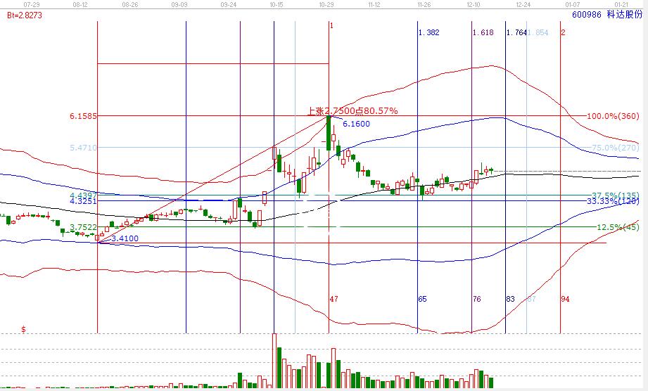 科達(dá)股份,在結(jié)束上漲行情回調(diào)至生命線,在生命線附近震蕩,中間有破位生命線,但又在百分比三分位支撐之上,碰上時(shí)間變盤點(diǎn),就還是上漲。掌握價(jià)格波動(dòng)規(guī)則,結(jié)合趨勢(shì)運(yùn)用,能進(jìn)一步的提升操作成功率,減少止損次數(shù),即使市場(chǎng)有人挖坑,我們也能輕松跳過(guò)啦。