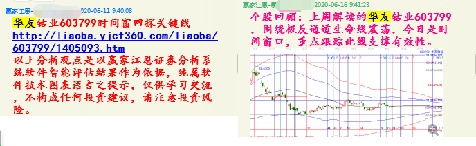 首先大家可以看到華友鈷業(yè)的最初分析,6月11日提前分析出6月16日時間窗 ,另外在6月16日時間窗當天也再次提到關(guān)注時間窗的有效性。從圖中可以看到華友鈷業(yè)在2.382倍時間窗口,股價放量拉升,隨后縮量震蕩回落至180度支撐止跌,聊吧11日公開分析的16日的2.618倍時間窗口,當天股價站上生命線后,直接拉升至漲停,這就是江恩神奇時間分析的再一次實戰(zhàn)檢驗。