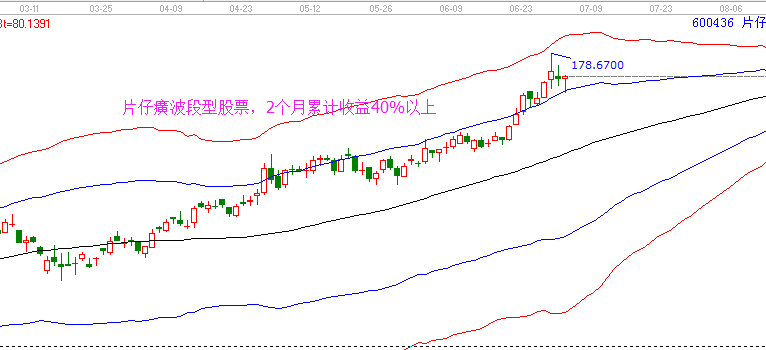 4、片仔癀從生命線緩步拉升,已經(jīng)有40%收益,后期還將繼續(xù)