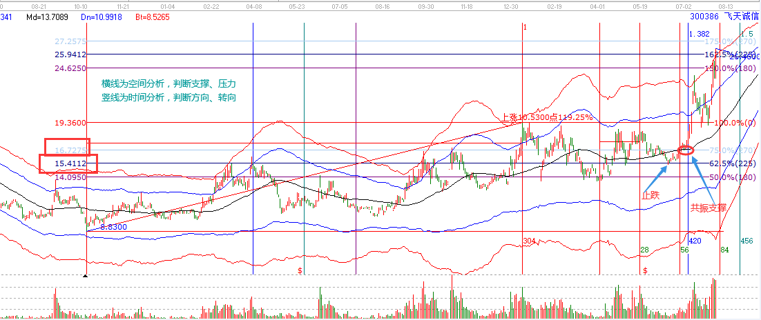 通過對(duì)時(shí)間的研究,我們可以找到股票變盤的時(shí)間,通過空間的研究,我們可以找到股票強(qiáng)勢(shì)支撐啟動(dòng)位置,時(shí)間+空間=最佳買入位置
