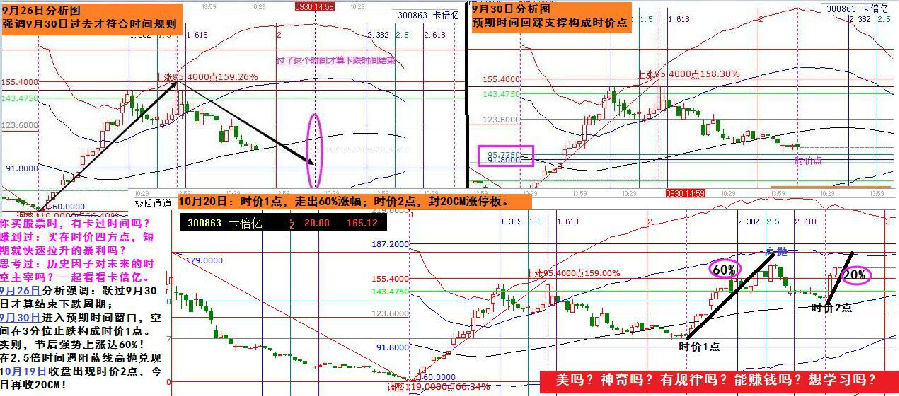 9月26日分析強調(diào):躍過9月30日才算結(jié)束下跌周期;9月30日進入預(yù)期時間窗口,空間在3分位止跌構(gòu)成時價1點。實則,節(jié)后強勢上漲達60%!在2.5倍時間遇阻藍線高拋兌現(xiàn)10月19日收盤出現(xiàn)時價2點,今日再收20CM!如此標(biāo)準(zhǔn)的時價韻律,踩住了都是真金白銀!看懂江恩時空技術(shù)的魅力了嗎?想要深入學(xué)習(xí),聯(lián)系贏家管理!