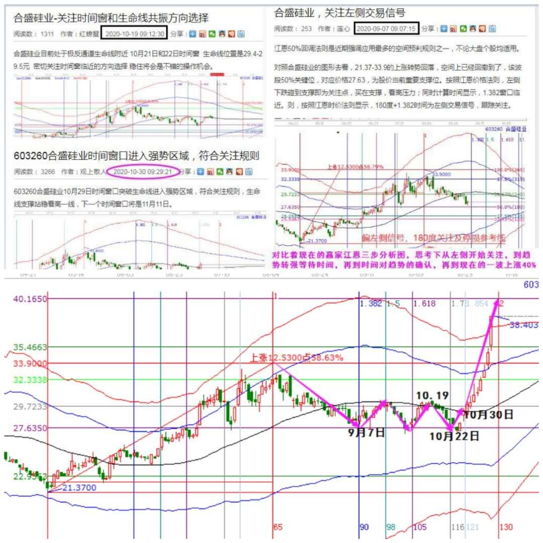 合盛硅業(yè),9月7日剛剛躍過時間就納入關(guān)注,10月19日上生命線,但需時間進一步確認;10月30日時間確認生命線后再次明確方向。有在認真關(guān)注贏家消息的你,這種股不會錯過。知其然更要知其所以然,沒賺到利潤,也要賺的技術(shù):對比著過去和現(xiàn)在的贏家江恩三步分析圖,思考下從左側(cè)開始關(guān)注,到趨勢轉(zhuǎn)強等待時間,再到時間對趨勢的確認,再到現(xiàn)在的一波上漲40%的漲幅??炊耍憔兔靼宗A家江恩交易體系波段操作這么牛。在低位都不愿意看的時候,我們就開始關(guān)注,伴隨著信號確認,逐步配置好倉位,當(dāng)主升開始的時候,就是安安心心吃肉,吃大肉。