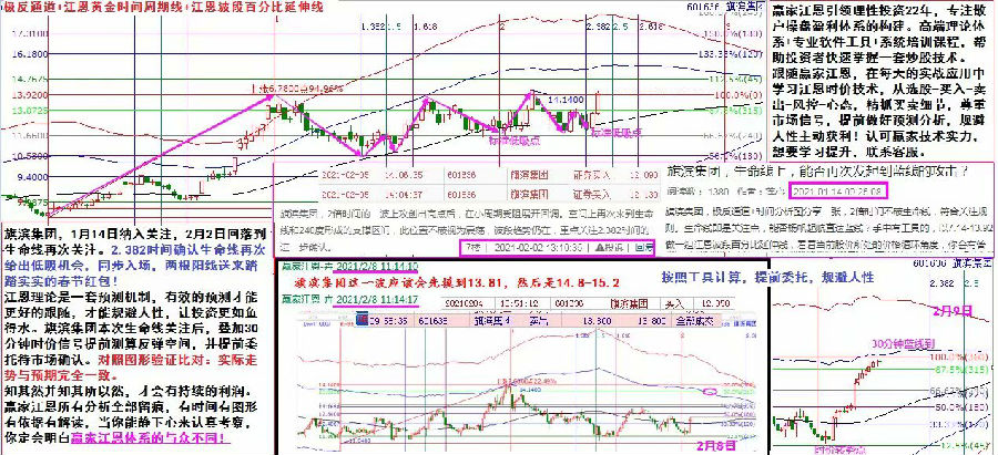 生命線買點學(xué)習(xí)應(yīng)用之旗濱集團(tuán)旗濱集團(tuán),1月14日納入關(guān)注,2月2日回落到生命線再次關(guān)注。2.382時間確認(rèn)生命線再次給出低吸機(jī)會,同步入場,兩根陽線送來踏踏實實的春節(jié)紅包!江恩理論是一套預(yù)測機(jī)制,有效的預(yù)測才能更好的跟隨,才能規(guī)避人性,讓投資更如魚得水。旗濱集團(tuán)本次生命線關(guān)注后,疊加30分鐘時價信號提前測算反彈空間,并提前委托待市場確認(rèn)。對照圖形驗證比對:實際走勢與預(yù)期完全一致。知其然并知其所以然,才會有持續(xù)的利潤。贏家江恩所有分析全部留痕,有時間有圖形有依據(jù)有解讀,當(dāng)你能靜下心來認(rèn)真考察, 你定會明白贏家江恩體系的與眾不同!贏家江恩引領(lǐng)理性投資22年,專注散戶操盤盈利體系的構(gòu)建。高端理論體系+專業(yè)軟件工具+系統(tǒng)培訓(xùn)課程,幫助投資者快速掌握一套炒股技術(shù)。跟隨贏家江恩,在每天的實戰(zhàn)應(yīng)用中學(xué)習(xí)江恩時價技術(shù),從選股-買入-賣出-風(fēng)控-心態(tài),精抓買賣細(xì)節(jié),尊重市場信號,提前做好預(yù)測分析,規(guī)避人性主動獲利!