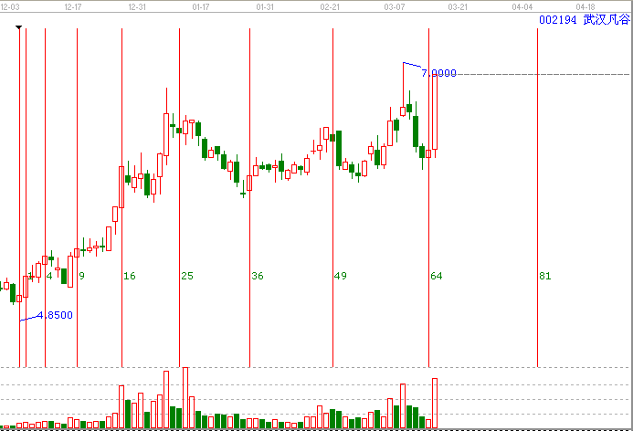 *:平方時(shí)間周期線(xiàn):依據(jù)贏家平方時(shí)間周期線(xiàn)提示002194的變盤(pán)點(diǎn)在3月14日(也就是64周天的變盤(pán)日),(這個(gè)工具的用法選擇重要的高低點(diǎn)即可,002194的時(shí)間起點(diǎn)為12年12月04日的低點(diǎn)。)