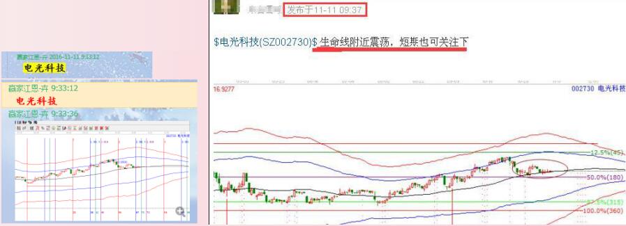 自9月27日市場(chǎng)回踩到2973點(diǎn)附近,此位置是我們強(qiáng)調(diào)的時(shí)空點(diǎn),當(dāng)時(shí)市場(chǎng)直接看高到3250點(diǎn)附近,因此,在上漲中的每一次回探都是低吸介入的良機(jī)。而大盤在11月9日下踩3100點(diǎn)附近,回踩到60分鐘生命線附近,贏家結(jié)合工具提示低吸。電光科技就是在這波調(diào)整的時(shí)候選出介入的,下面我們具體分析: