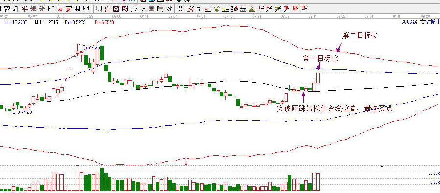 2.生命線之所以可以做為最佳買點位置,是因為從趨勢上剛剛轉(zhuǎn)變,可以看做是一波上漲的啟動位置,操作成本更低,安全性更高,盈利空間大,所以,向上突破生命線并站穩(wěn)生命線位置,就可以是最佳的買點位置。所以太空板業(yè)在突破生命線之后,回踩生命線位置就是最佳買點。
