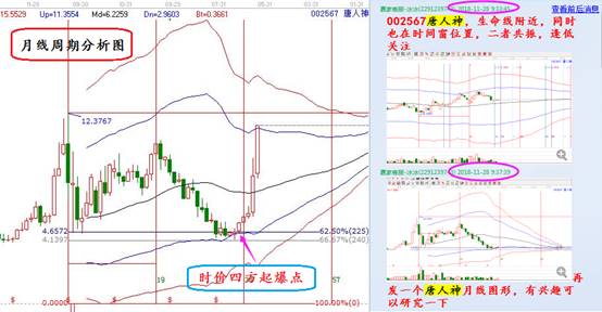 唐人神,贏家江恩股票軟件于11月28日選出,日線周期圖形中,個(gè)股處于極反通道生命線支撐,和黃金時(shí)間周期線時(shí)間窗共振,形成日線的時(shí)價(jià)共振起爆點(diǎn);