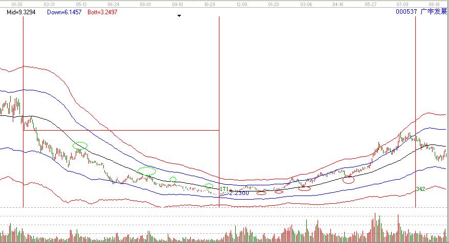 000537在2008年3月份11快附近破極反通道生命線開始下跌,在下跌的過程當(dāng)中,都是碰到極反通道就下的,直到2008.11.月份見底后上攻建發(fā)集團(tuán)的生命線,短期的橫盤后展開了一波小牛行情,在上升的過程當(dāng)中,每一次極反通道生命線的回踩都是你所介入的位置,極反通道買賣交易規(guī)則,這樣你就不會被黑馬拋棄了。直到上攻到2009.7月份11.00附近,中間有誤差【低點(diǎn)到高點(diǎn)剛好運(yùn)行了一個循環(huán)】