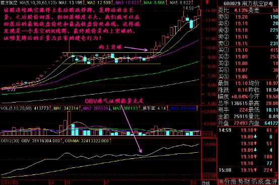 特別提醒如果是某種基本面變化原因?qū)е碌耐E?,一旦復牌后出現(xiàn)巨量跳空K線的,一般都是主力的原因,有的時候是主力乘混亂建倉,而有的時候是主力借機出貨。這樣我們可以通過OBV能量潮來輔助判斷一下,再把跳空后的股價高低收盤價框起來,形成一個懸空K線群,觀察股價是向哪個方向突破,也就知道主力在干什么了,只要主力突破的方向是向上,我們就基本可以跟進了!