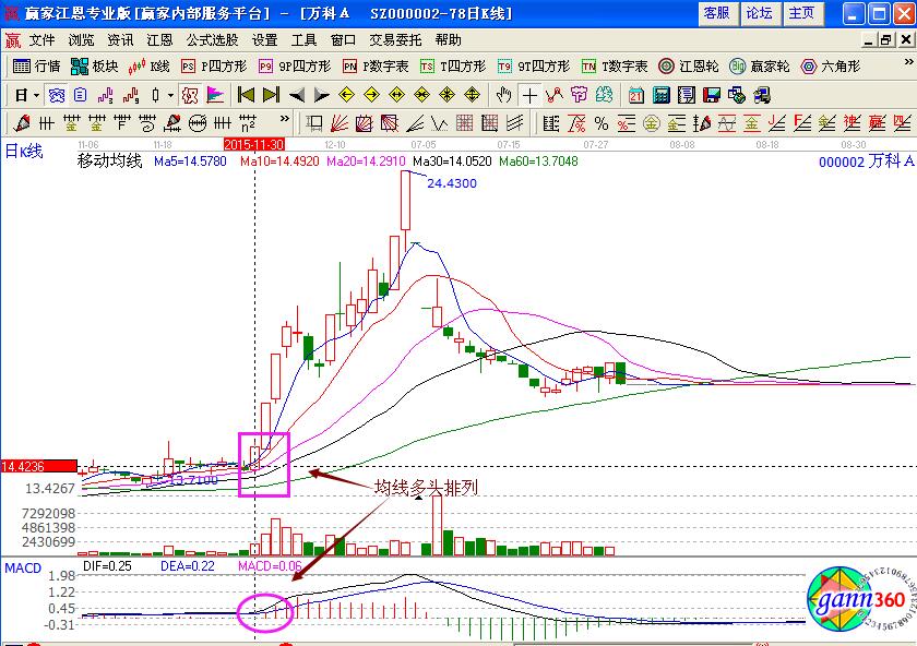 第四種,符合下面第多種條件的個(gè)股,次日也容易大漲:流通盤(pán)小于3000萬(wàn)股、股價(jià)低,3元價(jià)格的股票遠(yuǎn)比15元價(jià)格的股票容易漲停。日K線組合較好,且量比已經(jīng)開(kāi)始放大。5日、10日、30日均線呈多頭排列或準(zhǔn)多頭排列。技術(shù)指標(biāo)呈強(qiáng)勢(shì),特別是日MACD即將出紅柱,且5分鐘、15分鐘、30分鐘MACD至少有一兩根紅柱。