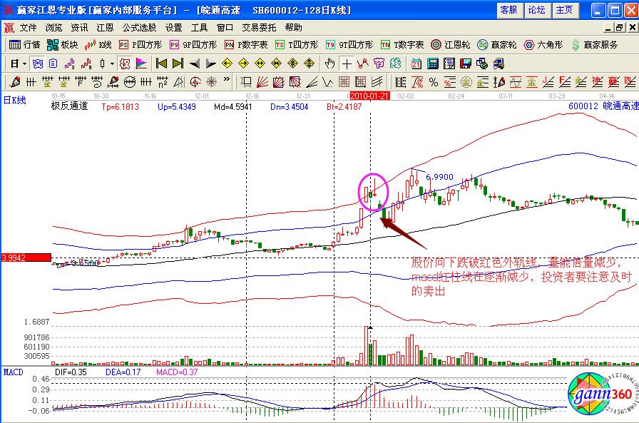 而對(duì)比賣出點(diǎn)的位置有兩個(gè),在1月21日形成的下跌回調(diào)跌破了紅色外軌線,量能倍量減少,macd紅柱線逐漸減少,投資者可以及時(shí)的進(jìn)行賣出操作,之后股價(jià)經(jīng)過回調(diào)止跌企穩(wěn),向上拉升,再次突破藍(lán)色上軌線,并且股價(jià)達(dá)到了6.99元的高價(jià),此時(shí)股價(jià)沒有突破紅色外軌線,投資者要注意上方的壓力,如果出現(xiàn)低開或者是回調(diào),要及時(shí)的賣出,規(guī)避短線下跌的風(fēng)險(xiǎn)。