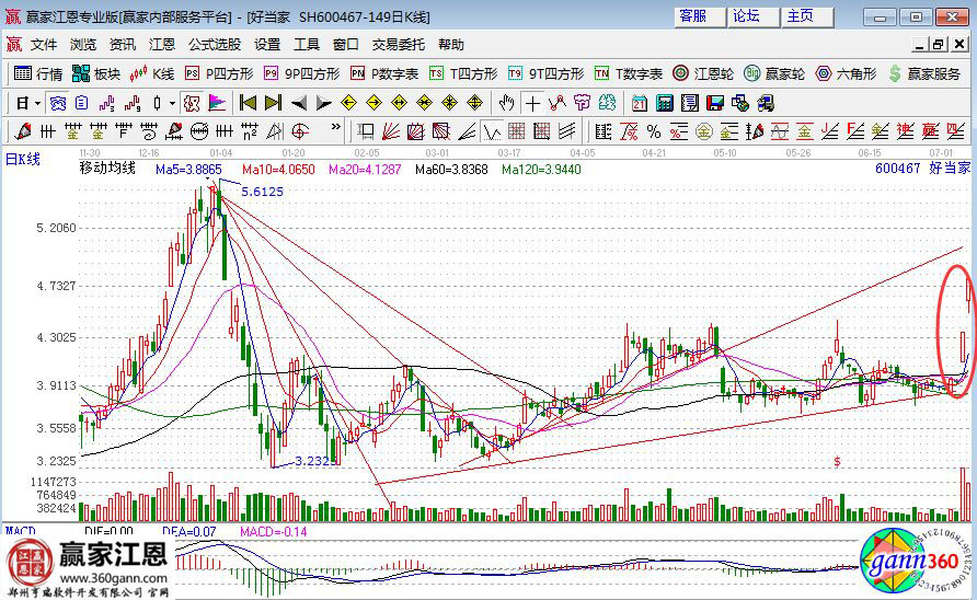 所謂的等,就是等待時(shí)機(jī)。重大利好股,主力控盤(pán)股,龍頭股,要抓漲停板必須符合以上三時(shí)機(jī)。例如下圖中的好當(dāng)家。在2016年7月份的之后該股是主力強(qiáng)力控盤(pán)的股票,從下雨天中的畫(huà)線,大家愛(ài)可以看出預(yù)期的上漲空間。