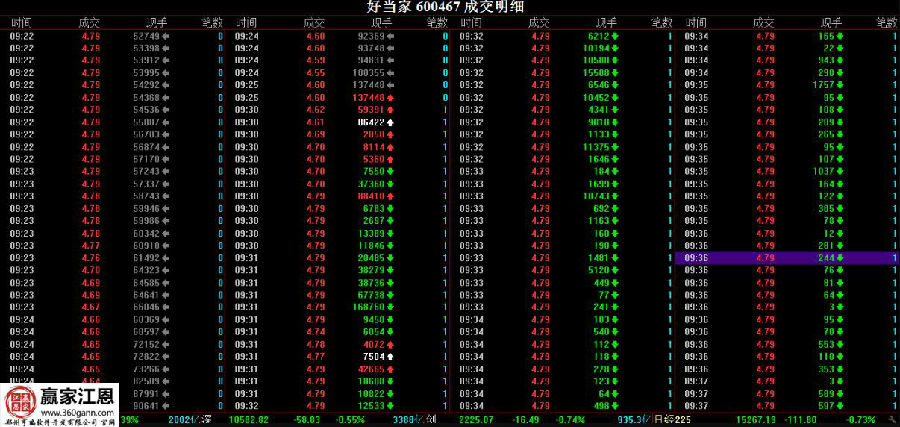 所謂的快就是快速找出快速掛單。在每日9:26分左右漲跌停龍虎榜上找,若有符合買(mǎi)進(jìn)條件,然后立即以漲停價(jià)掛單買(mǎi)入。還是以好當(dāng)家為例,下圖是好當(dāng)家的成交量明細(xì)。