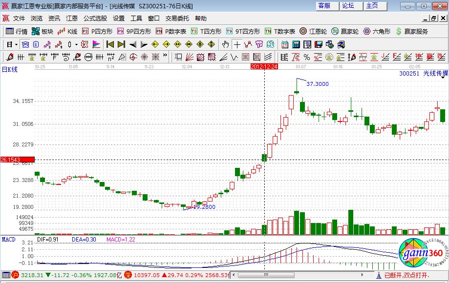 在2012年底部第一個漲停那天開盤買入該股,在12月24日出現(xiàn)了短線見頂就出貨了,后來又連續(xù)拔高就很難買回來了。這個股的操作錯誤就錯在我以長線思維買入,判定電影市場會有大爆發(fā),認(rèn)為光線的運(yùn)營方式非常好,會形成市場和公司兩方面的雙擊。但是因?yàn)槎叹€思維賣掉,導(dǎo)致錯過巨額利潤。這就是長線短做的錯誤。