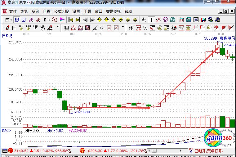 外在條件對(duì)股票的影響主要表現(xiàn)在資金上了,所有的資本市場(chǎng)、證券市場(chǎng),其實(shí)都是資金推動(dòng)型的市場(chǎng)。沒(méi)有錢(qián)股價(jià)漲不懂,有的時(shí)間一個(gè)小的波段也很容易是自己推動(dòng)起來(lái)的行情。資金的推動(dòng)越大,且行情就越加的明顯。那么我們今天就找一只股票來(lái)看看,比如說(shuō),富春股份。
