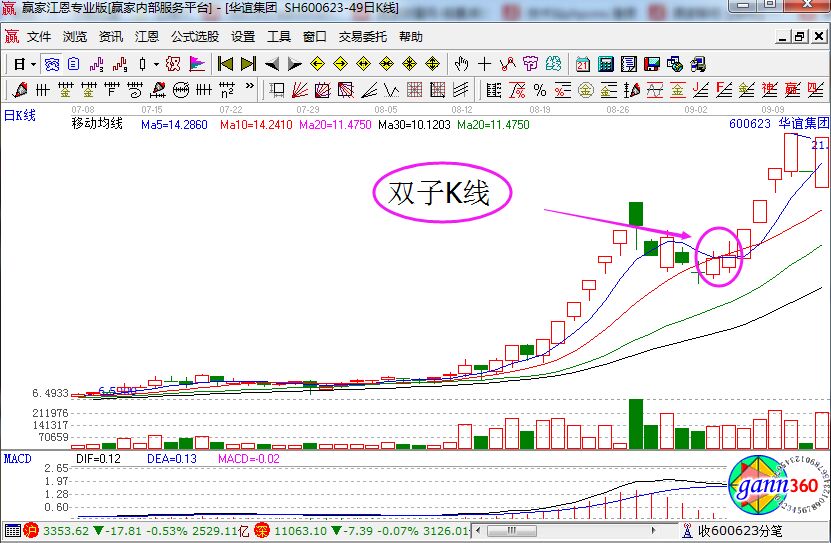 雙子K線形態(tài)是什么樣的?首先它是由兩根K線所組成的,而且這兩個(gè)K線均為中小陽線,經(jīng)常出現(xiàn)的位置是在股價(jià)的低價(jià)位,這樣捕捉到的個(gè)股漲停的概率就會(huì)非常的大。該形態(tài)究竟是怎么樣的?大家可以參看下面華誼集團(tuán)的走勢(shì)來進(jìn)行記憶。