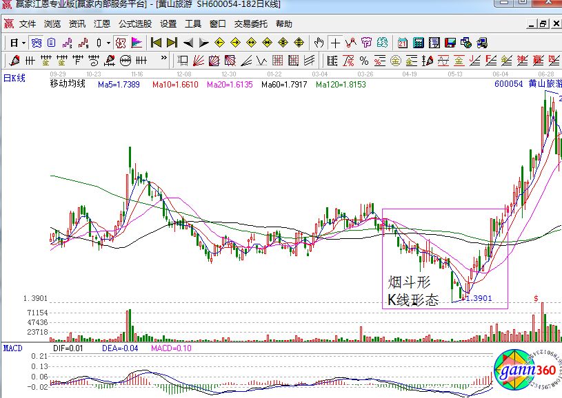 該股是黃山旅游的走勢(shì)變化,從上圖中我們可以看到該股在前面的走勢(shì)中股價(jià)均處于橫盤針對(duì)哪個(gè)的i刑天,在這個(gè)期間,主力是在不斷的吸籌的,目的就是為了拉升股價(jià)做準(zhǔn)備,終于在一段盤整之后出現(xiàn)了下跌的走勢(shì),并且創(chuàng)出了股價(jià)的新股,形成了煙斗形的底部,這個(gè)時(shí)候就預(yù)示著行情的反轉(zhuǎn)變化。