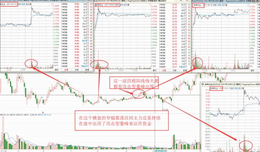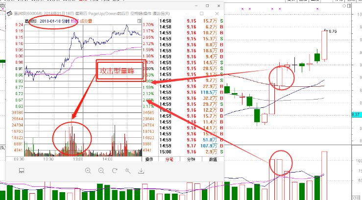 攻擊型量峰是怎么樣的?它指的就是在交易過(guò)程中,主力機(jī)構(gòu)在盤中不間斷地持續(xù)投入大筆資金積極買進(jìn)所造成的股價(jià)在特定時(shí)間段發(fā)生劇烈波動(dòng)的現(xiàn)象。由于攻擊型量峰在盤中不間斷的持續(xù)性大筆資金的投入,這就決定了不可能是小資金的行為,所以投資者對(duì)于這樣的股票挖掘是具有實(shí)戰(zhàn)意義的。如下圖所示。
