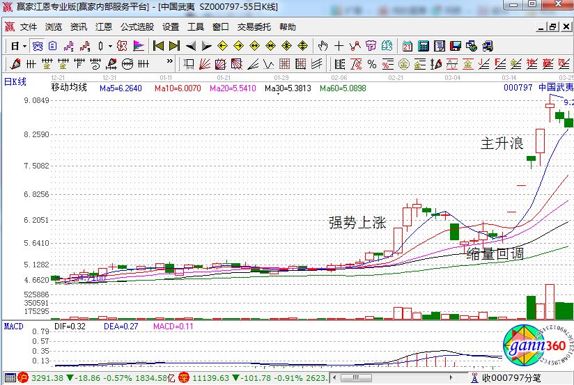 這個形態(tài)的買入要點就是回調(diào)階段末期放量拉升開始的點,這樣就能夠不會錯過后面的上漲利潤,當然大家在進行買點確定的時候,可以結(jié)合贏家江恩軟件的特色指標來進行綜合分析,這樣可以提高成功的概率。