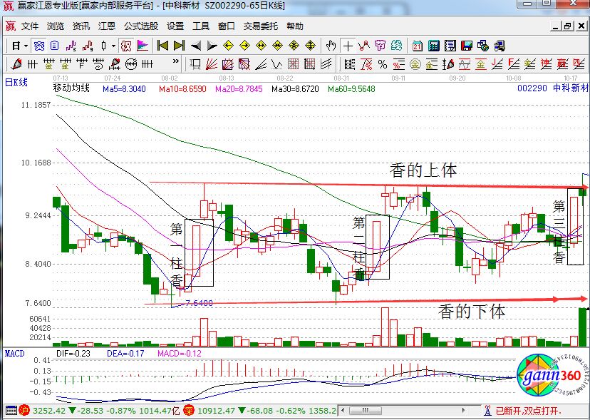 三柱香形態(tài)一般是以一漲停為基準(zhǔn)短期內(nèi)呈現(xiàn)n型回落不破前漲停日低點,形態(tài)次之的是呈現(xiàn)N型會做,回調(diào)到達(dá)下軌線果斷的買入,上漲到上軌果斷的賣出。該形態(tài)的時間上特征就是:從最高點回調(diào)下來的第2天、第5天、第7天、第8天的關(guān)鍵時間周期買賣點,這個形態(tài)的個股一般是回調(diào)到第5天、第8天的時候才會有機(jī)會買入,超過13天不起則行情就會走弱,所以投資者就應(yīng)該果斷的賣出。
