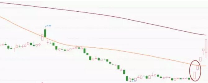 從上圖我們可以看到,這只股票在經(jīng)過(guò)長(zhǎng)期下跌后一段時(shí)間橫盤拉出第一個(gè)漲停隨后第二天繼續(xù)封板,這其實(shí)就是啟動(dòng)性的漲停,既然能夠連續(xù)能夠封兩個(gè)板,自然后面還會(huì)有連板,所以第二個(gè)漲停板的位置就是最佳的進(jìn)場(chǎng)時(shí)機(jī)。