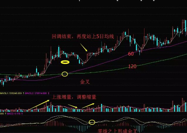 如上圖所示,股價(jià)在經(jīng)過(guò)了長(zhǎng)期下跌之后,已經(jīng)處于相對(duì)的低位了,之后股價(jià)止跌逐步緩慢回升,隨后股價(jià)就開(kāi)始了一波稍強(qiáng)的漲勢(shì),伴隨著明顯的放量,市場(chǎng)人氣開(kāi)始聚焦,而剛剛止跌走平的60日、120日均線開(kāi)始有上行趨勢(shì),之后形成金叉,顯示趨勢(shì)有所反轉(zhuǎn)。