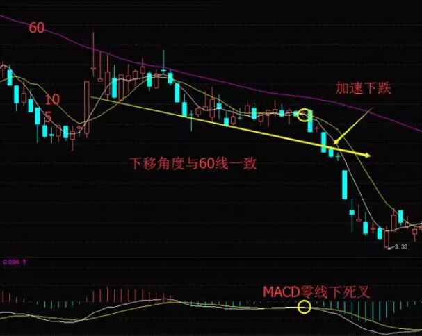 通過上面的走勢圖形,我們可以總結一下石牛海下沉要點的總結:K線處于下跌趨勢過程中,K線貼近60線,在該線之下運行,角度與該線一致,macd零線下死叉,K線出現(xiàn)大陰線,急跌即將開啟。
