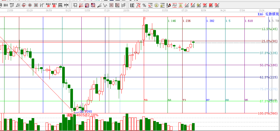 近期白銀表現(xiàn)異常強(qiáng)勢,連續(xù)收陽,目前短周期30分走勢處于江恩90度位置震蕩整理,阻力21.05,第二阻力,45度,21.11,指數(shù)小幅反彈之后,可以逢高小幅放空,下方支撐135度20.99, 180度 20.93,(支撐和阻力可相互轉(zhuǎn)化,大家和結(jié)合位置做決定)今日時間方面7:00, 10:00 ,14:30,18:00, 23:00,投資者盤中可密切留意時間窗口,結(jié)合盤中位置做策略【如有疑問,請聯(lián)系贏家客服】