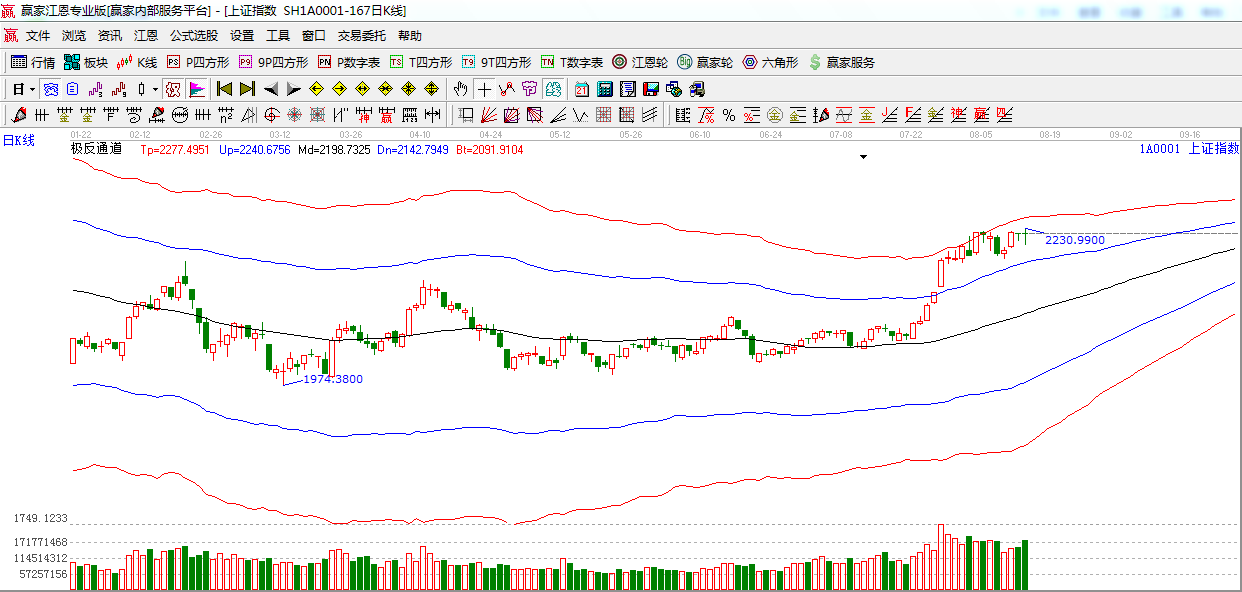 極反通道提示:指數(shù)探底回升,十字星報(bào)收,上方極反通道外軌線(xiàn)阻力2242點(diǎn),短期有回踩藍(lán)色線(xiàn)需求。