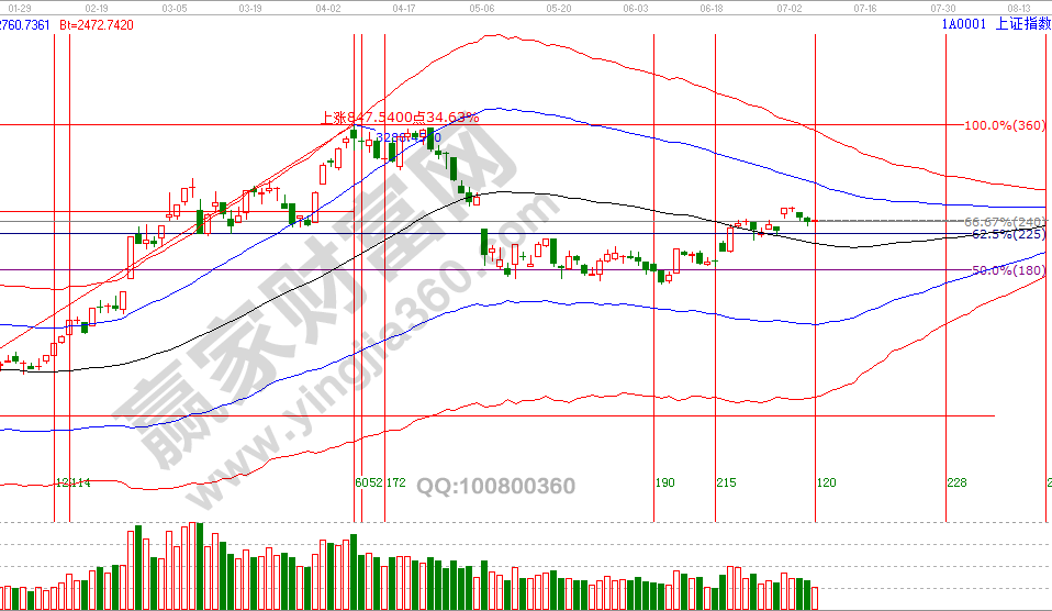 了解如何判斷未來的市場運行,最快的方法就是研究歷史。2號依據贏家江恩系統(tǒng)工具所提出的周期共振警示信號,并給出回探期具有參考價值的位置是60分鐘生命線,經過3天時間市場再一次驗證了極反通道周期推導的實戰(zhàn)性,此方法應用在學員區(qū)有過講解。指數觸及至短期關鍵位后出現止跌,強度不佳,但午盤點評中談到輕倉或空倉者午盤可以試探性參與,一切遵守方法信號、用紀律規(guī)則交易,這是同普通散戶巨大差別。本周參考位支撐是2944、2978點,壓力是3051、3074點,7月8號盤中壓力是45度3016點、90度3036點,盤中支撐是315度2978點,10號為土星沖日。操作策略,指數極反通道生命線上安全區(qū)域震蕩上攻,反彈動作還未結束,今日博弈籌碼以短期關鍵位做決策,整體持倉保持3-5成。