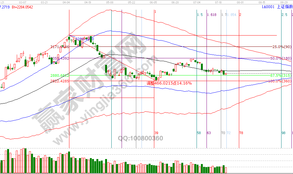 23(24)號(hào)是贏家江恩時(shí)間工具測(cè)算本月最后一個(gè)時(shí)間時(shí)間窗口,8號(hào)中陰后橫肋第12天,按費(fèi)氏時(shí)間線做圖25號(hào)是第13天,這是短線時(shí)間極限窗,進(jìn)入方向博弈決戰(zhàn)期。趨勢(shì)方向,三大指數(shù)深指、創(chuàng)業(yè)板在日線極反通道生命線上運(yùn)行,滬指線下弱勢(shì)區(qū)運(yùn)行,深市保持強(qiáng)勢(shì)運(yùn)行還有機(jī)會(huì)帶動(dòng)滬指轉(zhuǎn)好,深市失守則確認(rèn)日線趨勢(shì)轉(zhuǎn)弱。價(jià)格關(guān)鍵位上,滬指擊破波段百分比延伸線240度2878點(diǎn),或收復(fù)日線生命線2926點(diǎn)會(huì)有操作,這兩天要多盯盤做好應(yīng)對(duì)。7月24號(hào)盤中壓力是135度2911點(diǎn)、180度2928點(diǎn),盤中支撐是0度2860點(diǎn)、315度2844點(diǎn)。操作策略,指數(shù)極反通道生命線下弱勢(shì)震蕩,整體持倉(cāng)保持3成以內(nèi),用規(guī)則紀(jì)律應(yīng)對(duì)盤面方向選擇。
