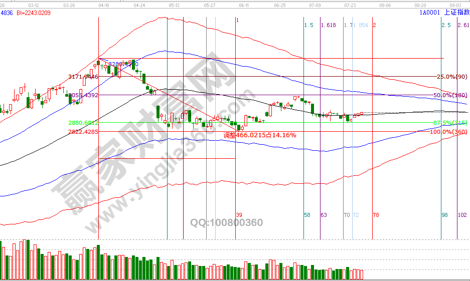 26號指數(shù)收盤正好在江恩價格四方形測算的2944點,保持在極反通道生命線2927點上安全區(qū)域運行,外因與場內(nèi)資金不活躍兩因素,同時上攻期將逐步遇藍色上軌線反壓力,按時間、空間循環(huán)判斷,維持24號觀點,波段百分比240度2878點支撐,向上反攻第一目標是0度2966點,第二目標是60分鐘藍色上軌線,運行時間周期為8月1號。7月29號盤中壓力是270度2961點、315度2978點,盤中支撐是180度2928點、135度2911點。操作策略,指數(shù)極反通道生命線震蕩,信號延續(xù)價格目標看60分鐘上軌線,時間周期看8月1號,信號結(jié)束為上證50失守60分鐘生命線,整體持倉保持3成。