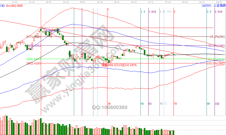 自29號開始在分析中強調(diào)有持倉的投資者這幾天跟蹤好盤面動向,30號上攻日線百分比零度位2966點(最高2965誤差1個點)時談到不再適合開新倉,昨天低開低走,已收盤數(shù)據(jù)分析,指數(shù)依然在分析的關(guān)鍵線日線生命線與60分鐘生命線共振位2928點上方,1號是8月首個日線時間窗口,關(guān)注好時間窗口,K線與趨勢線的關(guān)系來決定短線倉位去留。8月1號盤中壓力是225度2944點、270度2961點,盤中支撐是180度2928點、135度2911點。操作策略,指數(shù)極反通道生命線震蕩,指數(shù)失守60分鐘生命線則反彈信號結(jié)束,向上則關(guān)注60分藍色上軌線也有望形成反彈結(jié)束信號,投資者保持3成。