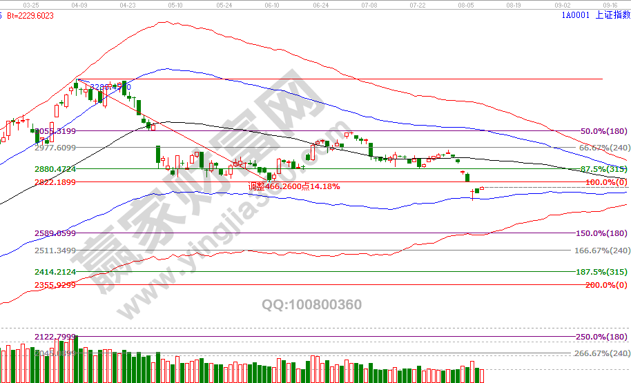 8號大盤高開最高上攻至提示的反壓位2800點(diǎn)受阻(最高2799點(diǎn)相差1點(diǎn))轉(zhuǎn)震蕩,另外一個市場信號上證50已回補(bǔ)5號缺口,以時價轉(zhuǎn)化路徑測算,目前價格在前時間在后,價格再度上攻后需要停下來等待時間這樣走勢才會和諧。維持6號大勢分析觀點(diǎn),日線藍(lán)色下軌線2744點(diǎn)、5號缺口2822及波段百分比延伸線180度2834點(diǎn)是運(yùn)行空間,靜態(tài)做好分析與策略,盤中只需關(guān)注好信號即可。8月9號盤中壓力是180度2800點(diǎn)、2808點(diǎn),盤中支撐是90度2772點(diǎn)。操作策略,指數(shù)生命線下弱勢通道運(yùn)行,到達(dá)藍(lán)色下軌線目標(biāo)位,激進(jìn)者按工具信號3成倉交易。