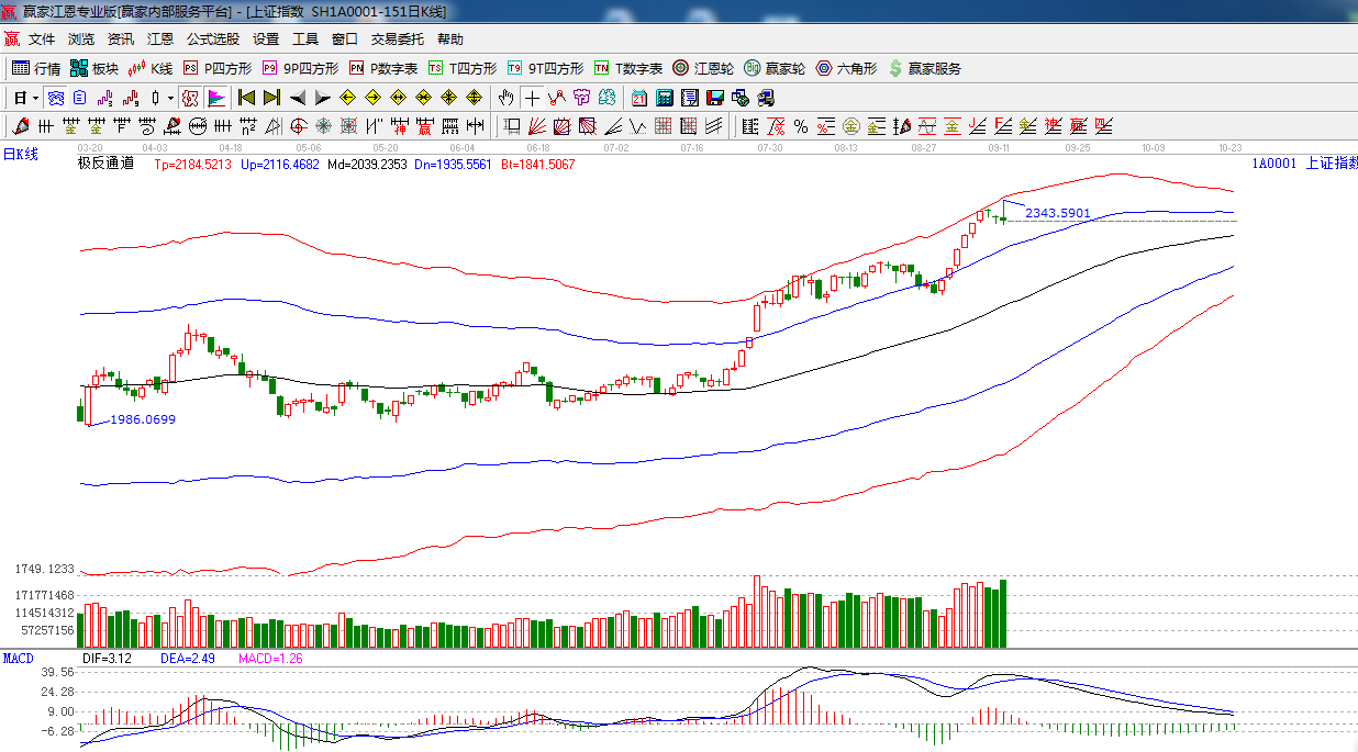 江恩看盤綜述:依據(jù)贏家江恩技術(shù)工具分析得出:周四指數(shù)再次觸摸外軌線,隨后出現(xiàn)跳水,終盤以長上影線的放量十字星報收,預(yù)示短期將展開震蕩修復(fù)走勢,操作上,可考慮逐步撤離本輪反彈漲幅過大的個股。