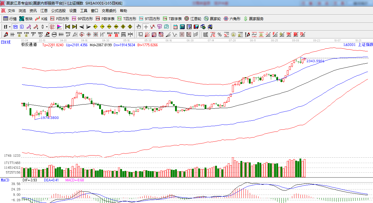 極反通道提示:外軌線之下高位震蕩,小陽線報(bào)收,謹(jǐn)慎看多。