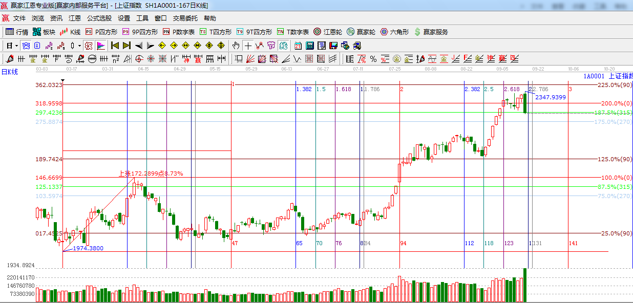 ☆依據(jù)贏家江恩系統(tǒng)黃金時(shí)間周期線提示:下一時(shí)間窗口是9月18日,9月25日。