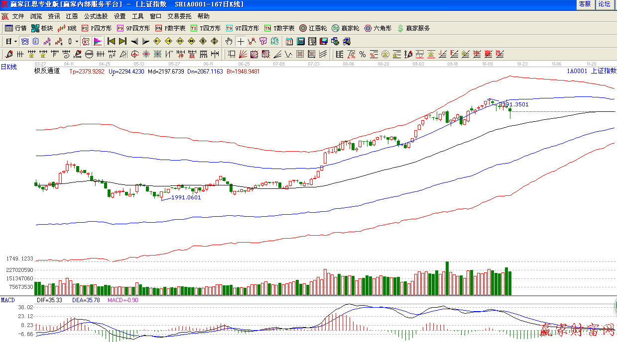 極反通道提示:前幾日圍繞外軌線高位震蕩,今日終于迎來了爆跌,下方日線支撐生命線2290附近。