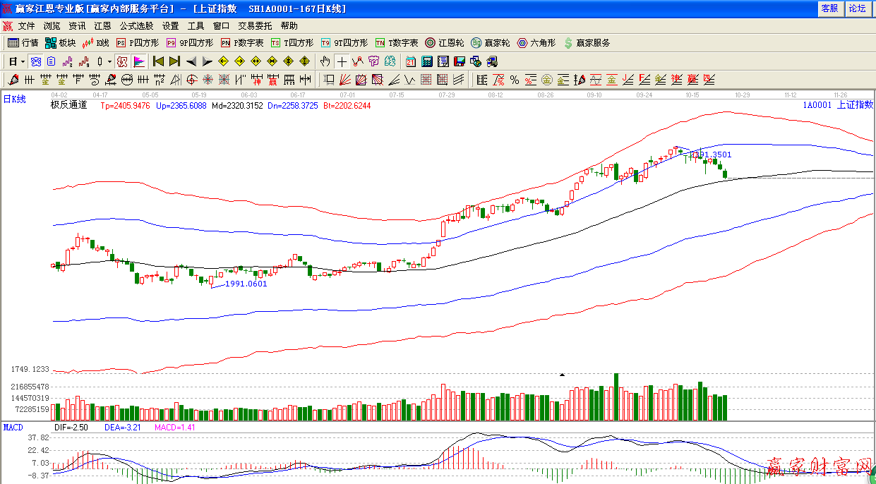 ★依據贏家江恩系統(tǒng)波段百分比提示:指數繼續(xù)低開低走,盤中破位0度支撐2318點,一路下探至生命線支撐附近,另外頸線位是2270點。