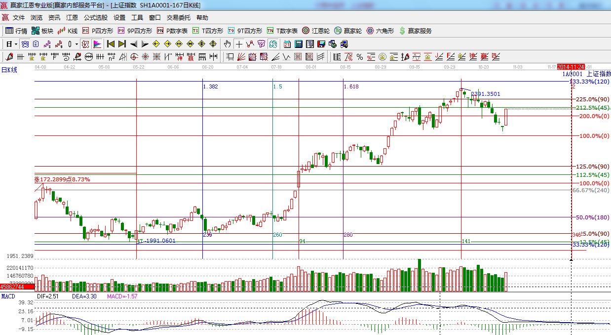 江恩看盤綜述:依據(jù)贏家江恩技術(shù)工具分析得出:今日指數(shù)如期震蕩回升,今天的上漲是由短周期所引導(dǎo)的,持續(xù)性有待考驗(yàn),目前這個(gè)位置短線反彈的重點(diǎn)是量能,如后期量能不能有效跟進(jìn),短期震蕩在所難免,操作上,保持謹(jǐn)慎態(tài)度,倉位控制在5倉左右。