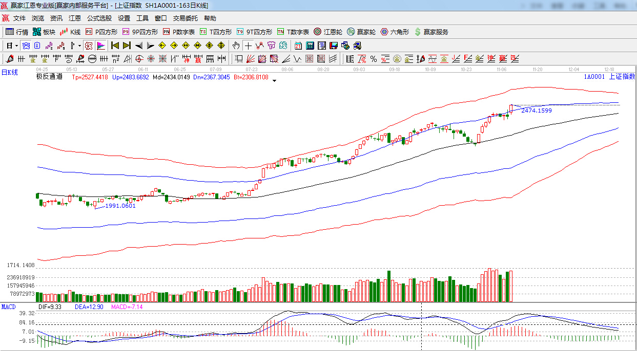 盤面上,受APEC會(huì)議確定的重磅利好,金融股和“一帶一路”相關(guān)概念大幅飆升,通用航空、醫(yī)療器械,大飛機(jī)等板塊跌幅靠前,目前上證指數(shù)仍然處在強(qiáng)勢(shì)狀態(tài)中,相比之下,創(chuàng)業(yè)板小幅回落,技術(shù)面,明日需關(guān)注上方即將面臨的江恩180度2480點(diǎn)-2489點(diǎn)阻力,預(yù)計(jì)周二大盤維持高位震蕩的走勢(shì)。