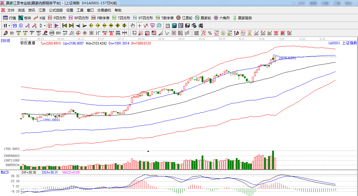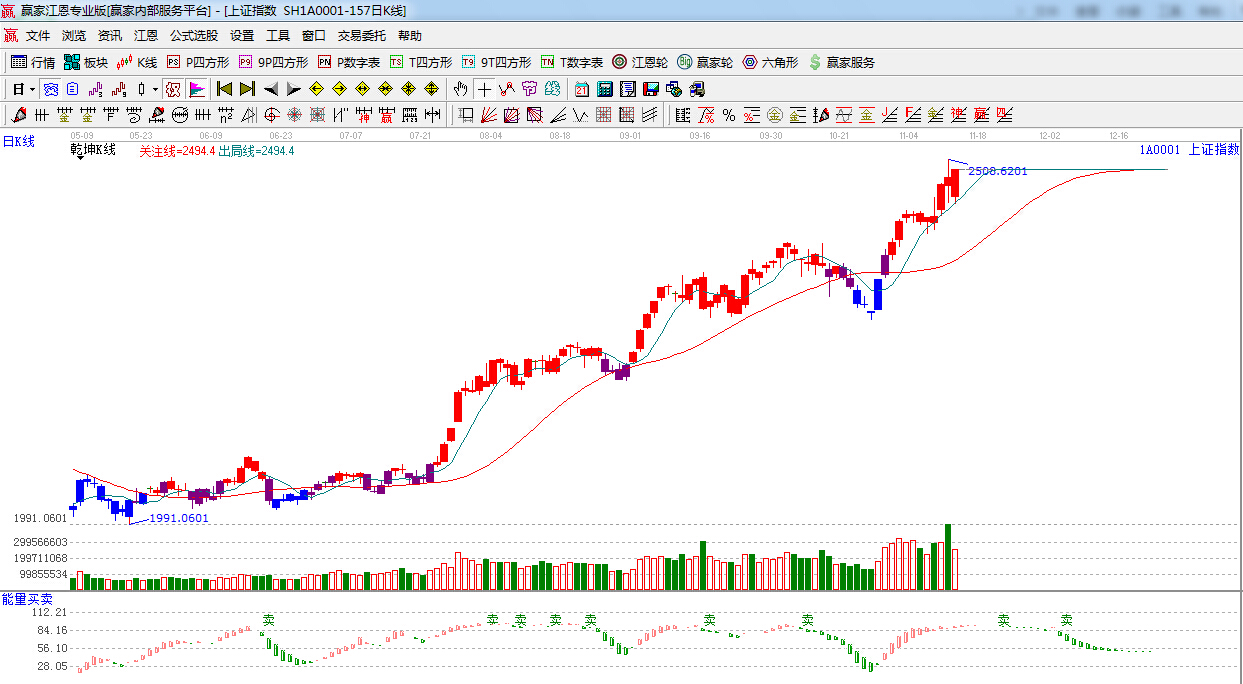江恩看盤綜述:依據(jù)贏家江恩技術(shù)工具分析得出:上證指數(shù)低開高走,以中陽線報收,收復江恩180度2480點,但量能較昨日大幅減少,后期若無量能跟隨,短期維持在2500點附近形成強勢震蕩行情難以避免,短線依然留意180度2480點的得失,本月重要時間窗口在11月24日。