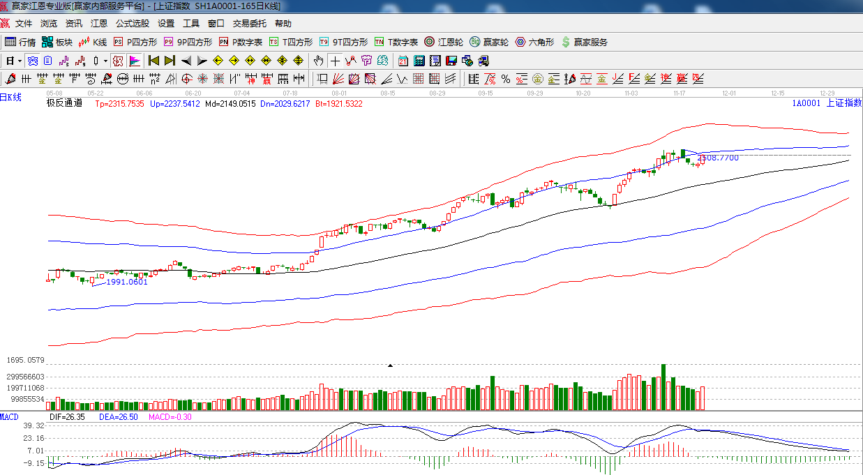 極反通道提示:在權(quán)重的帶領(lǐng)下,日線反抽藍(lán)色外軌線,周一留意外軌線2496點(diǎn)阻力。