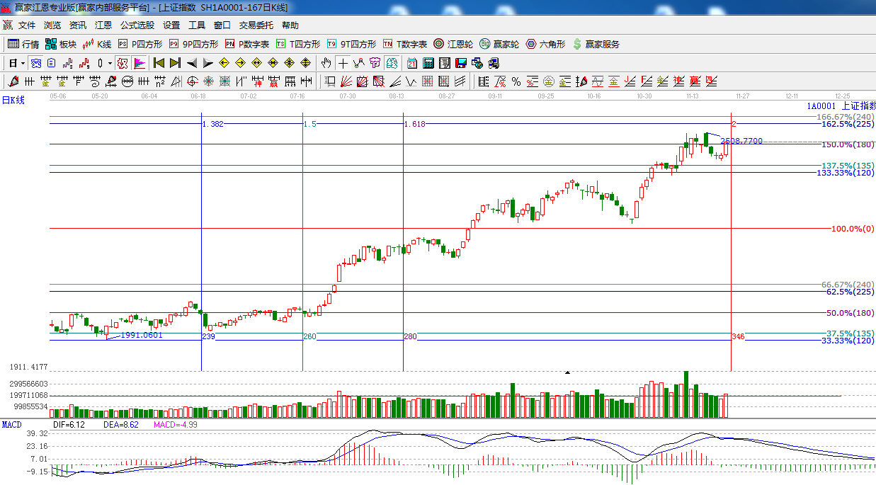 江恩看盤綜述:依據(jù)贏家江恩技術(shù)工具分析得出:周五上證指數(shù)在券商為代表的權(quán)重板塊帶動(dòng)下,強(qiáng)勢(shì)反彈,突破180度2480點(diǎn),180度轉(zhuǎn)換為支撐,今日此位置回踩不破將攻擊前高,前期提到的時(shí)間之窗到來(lái),留意近期量能變化,操作上,適當(dāng)控制倉(cāng)位為主,高拋低吸為主。