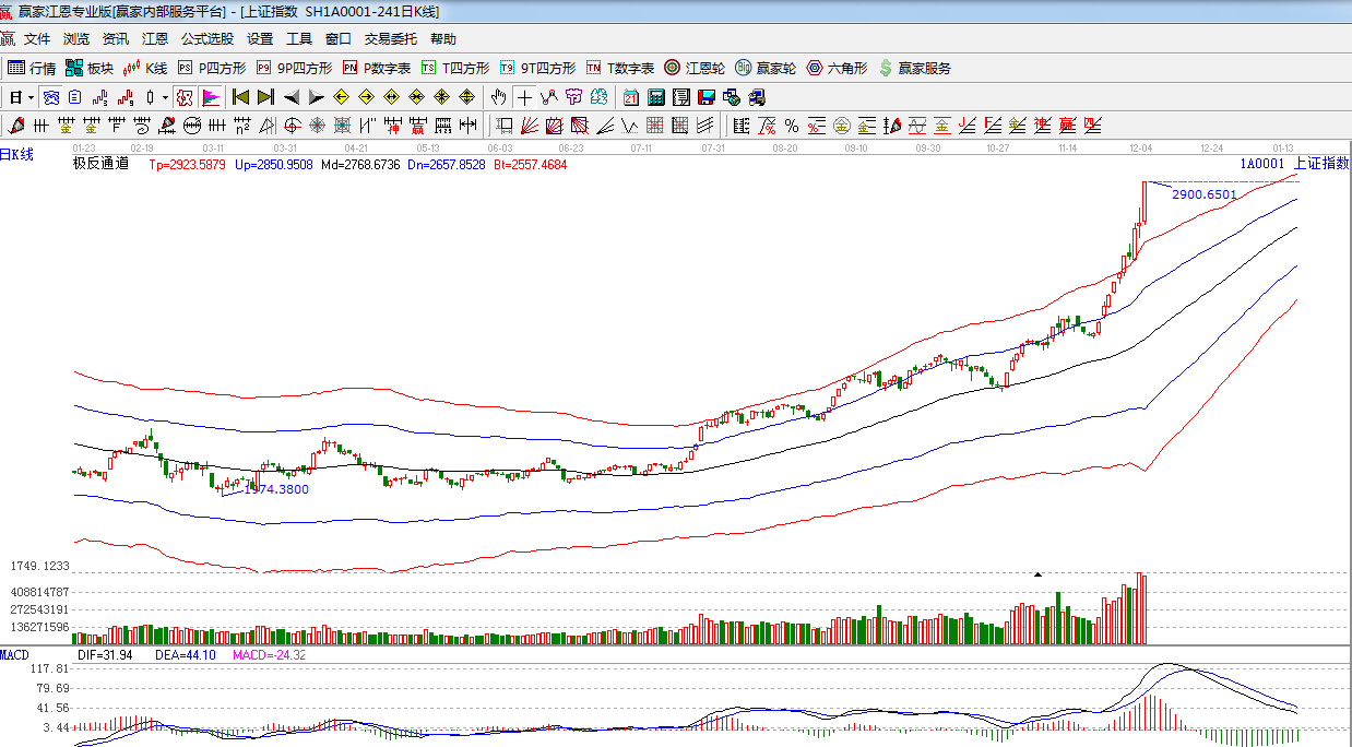 極反通道提示:處于紅色外軌線之外,延續(xù)強(qiáng)勢(shì)上攻趨勢(shì),看多。