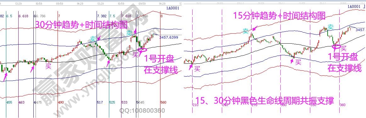 1號(hào)滬指再度逼近7月3458高點(diǎn),突破高點(diǎn)勢(shì)在必得。30號(hào)上攻日線江恩箱8*1線與極反通道藍(lán)色上軌線共振壓力回落,對(duì)1號(hào)市場分析預(yù)判中談到,60分鐘生命線上運(yùn)行市場還將延續(xù)反攻,此結(jié)論是從短周期時(shí)間結(jié)構(gòu)中推導(dǎo)得出??臻g上學(xué)員可以打開工具,通過極反通道查看30、15分鐘K線圖,周期共振信號(hào)直觀、清晰可見,在贏家江恩體系中此信號(hào)是解決如何確立買賣點(diǎn),市場流傳一句會(huì)買的是徒弟,會(huì)賣的是師傅,而該信號(hào)不僅解決了買點(diǎn),更解決了賣點(diǎn),同時(shí)成功率達(dá)85%以上,并且信號(hào)出現(xiàn)就是空間拐點(diǎn),是廣大投資者所期望的買在低點(diǎn)賣在高點(diǎn)模式。2號(hào)下午3:30將在學(xué)員群講解此模式實(shí)戰(zhàn)應(yīng)用技巧,聽課方式聯(lián)系贏家工作人員。