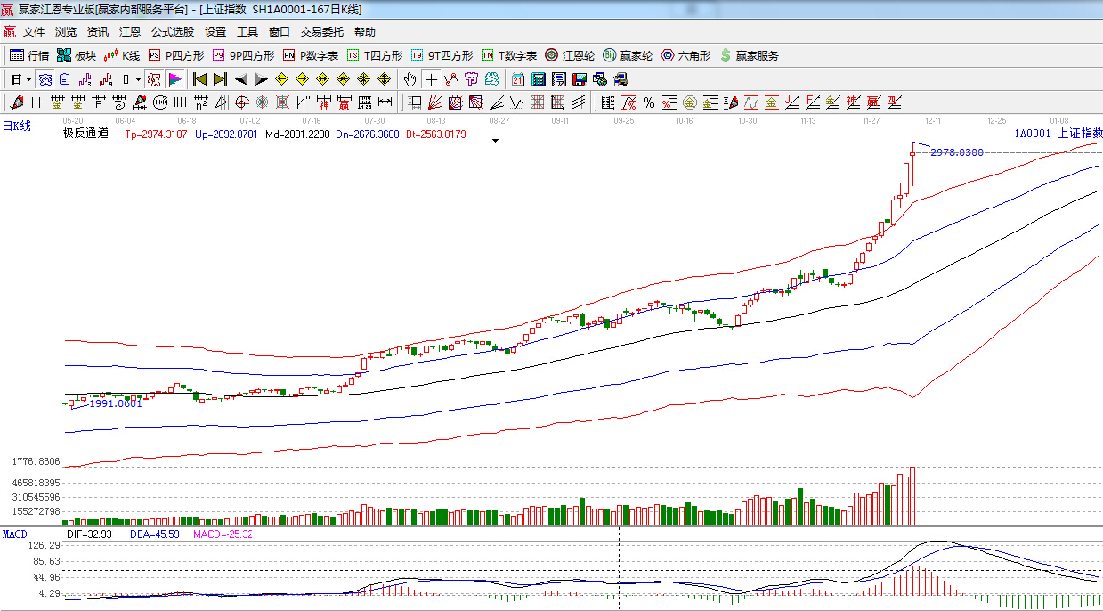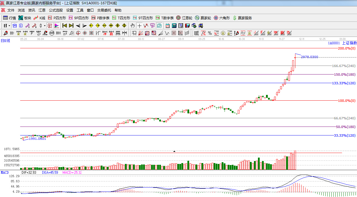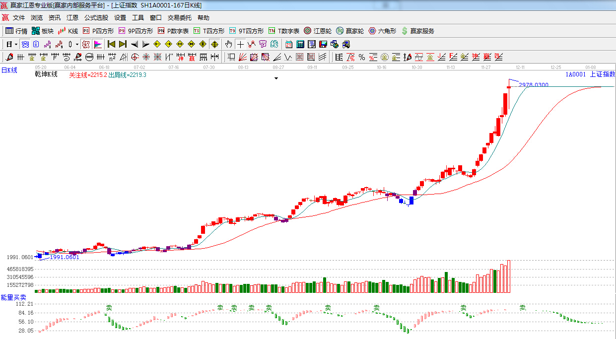 盤面上,券商繼續(xù)強(qiáng)勢大漲,幾乎再次出現(xiàn)集體漲停,石油、銀行板塊也繼續(xù)走強(qiáng),地產(chǎn)、煤炭、有色、表現(xiàn)較弱,午后受加快軍事裝備體系構(gòu)建的消息影響,航天航空、船舶板塊集體強(qiáng)勢拉升,總體來看,券商等板塊帶領(lǐng)大盤一路逼近3000點(diǎn),量能也逐步創(chuàng)出新高,二八行情會持續(xù),目前整體向好趨勢不變短線震蕩或加劇。