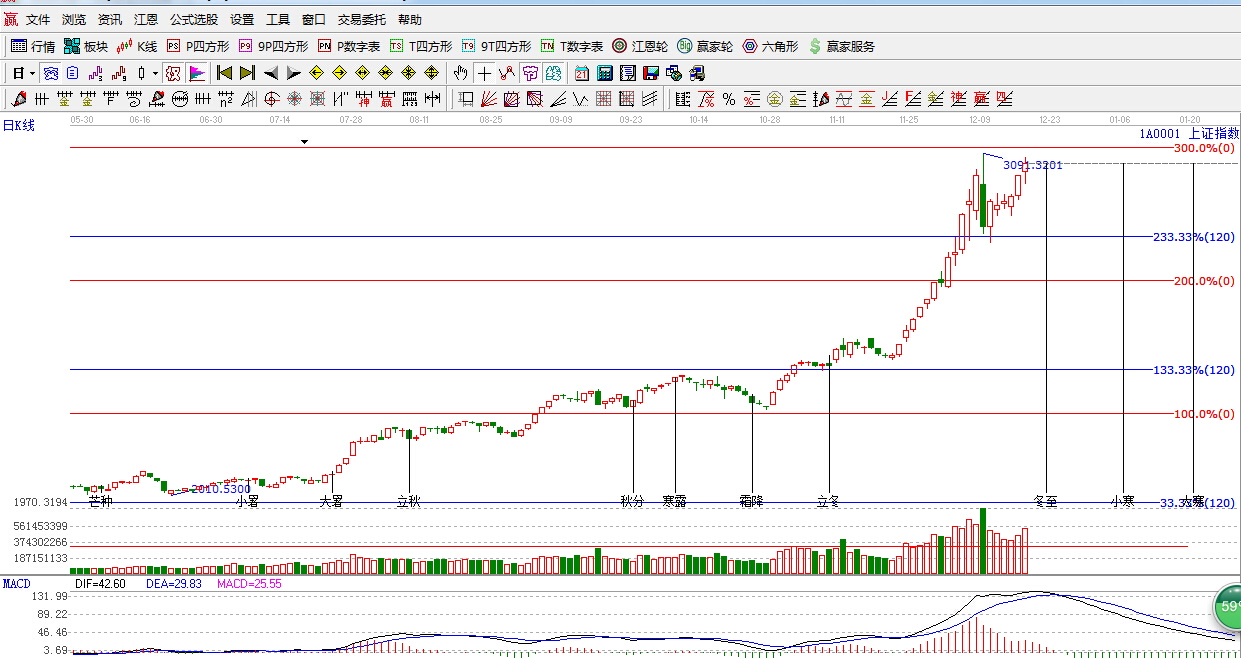 ★依據(jù)贏家江恩系統(tǒng)黃金時(shí)間周期線提示:12月12日時(shí)間之窗之后,指數(shù)繼續(xù)震蕩回升,留意后期量能情況,下一個(gè)時(shí)間之窗是24節(jié)氣的“冬至”節(jié)點(diǎn)。