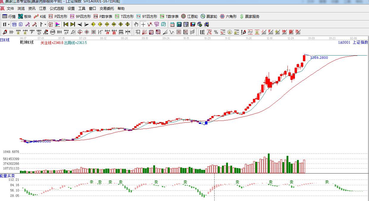 江恩看盤綜述:依據(jù)贏家江恩技術(shù)工具分析得出:今日2015年首個(gè)交易日A股實(shí)現(xiàn)“開門紅”,突破了江恩180度阻力,回踩不破,繼續(xù)看高,下一目標(biāo)位重要?dú)v史高點(diǎn)3478點(diǎn),也是目前的江恩240度位置,操作上,藍(lán)籌股依然是炒作的主流,另外國資改革概念也可適當(dāng)逢低關(guān)注。
