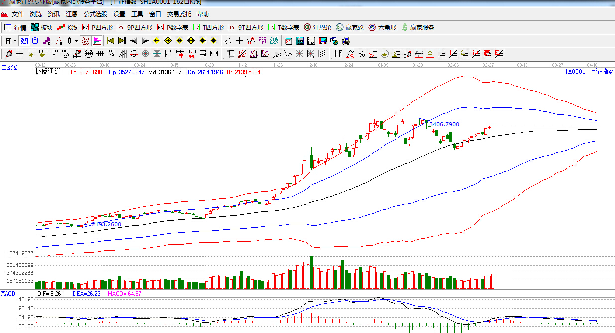 江恩看盤綜述:依據(jù)贏家江恩技術(shù)工具分析得出:周一早盤兩市高開回落震蕩整理,午后小幅上揚(yáng),終盤T字線報收,目前短線面臨前高3406點(diǎn)阻力,而且目前又處于兩會窗口期,短線保持一份謹(jǐn)慎,操作上,建議投資者避免追漲,適當(dāng)把握盤中調(diào)整機(jī)會,逢低布局政策紅利股。